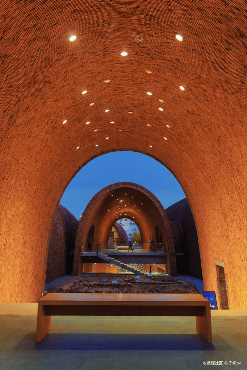 景德镇御窑博物馆,其独特的建筑造型是以德镇清代独创的“蛋形柴窑”为灵感来源,红色的砖墙构筑成八个多曲面拱体结构,古朴中不失艺术美感,是景德镇重要的城市文化地标。馆内展出从御窑厂历代官窑遗址中所取得的重要陶瓷考古成果以及发掘的各个时期的重要遗物,是一处了解学习陶瓷文化的重要景点。