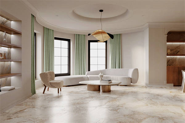 寻系列此次主要展现寻·逸石集900*1800mm规格的成员,其融合宋人藏珍的生活雅事,还原奢石纹理的设计,搭配恬静淡雅的色彩,让空间独具诗意风雅。