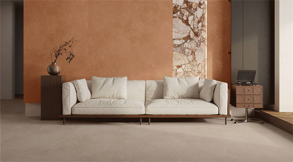 今年春季新品摩登纯色系列也将在陶博会上展现风采。质感水泥主砖搭配几何元素花砖,加上温暖的大地色系交织, 精致6°闪光效果和凹凸细节,以及防滑、防污、耐磨等属性,满足用户情绪价值与功能需求,是设计师强推的产品之一。